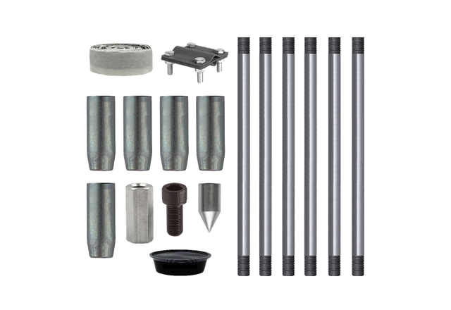 Универсальный комплект заземления оцинкованный 9 метров (1 х 9 м) для монтажа вертикальных элементов внешнего контура заземления. Состоит из 6 стальных оцинкованных прутков, соединительных муфт, наконечника и ударной насадки.