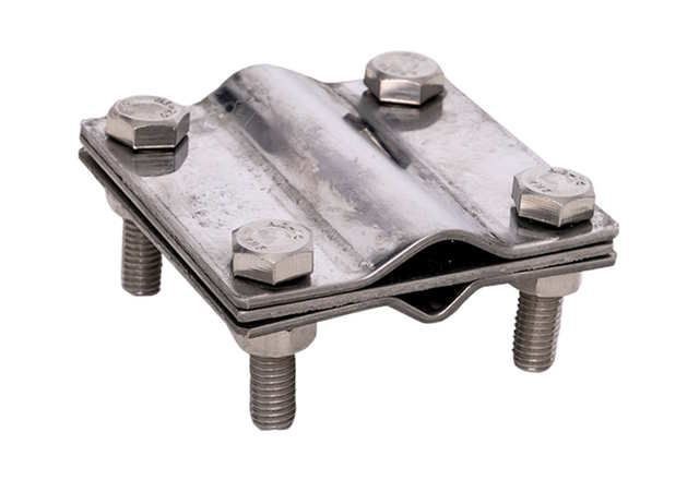 Как правило, применяется для параллельного и Т-образного соединения в системах заземления, что обусловлено его формой. По конфигурации состоит из трёх пластин защитой. Для стягивания применяются шестигранные гайки и болты.
